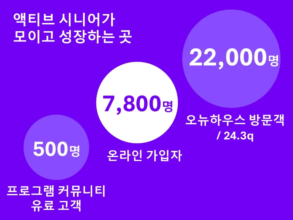오뉴엔 자신의 여가시간을 주체적으로 펼치고 싶은 1만 여명의 5060, 시니어 세대가 온 온〮오프라인으로 연결되어 있습니다.